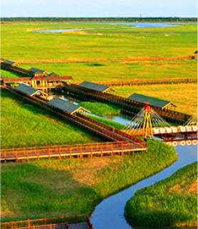 鼎翔景區毗鄰遼寧遼河口國家 級自然保護區,屬世界第一大 蘆葦蕩一隅,為典型的濱海河 川濕地。依托萬頃葦海,鼎翔 人秉持"天人合一"理念,持 續保護濕地生物多樣性,成就 人與自然和諧共生之美景,打 造出鳥樂園、太平河風光帶、 葦海蟹灘旅游景區,孕育出譽 滿天下的“粳冠"大米。在這 里既能領略濕地之都生態景觀 之野趣,又能品嘗奧運品質蟹 田大米之馨香,令人一詠三嘆 贊美叫絕,流連忘返。
